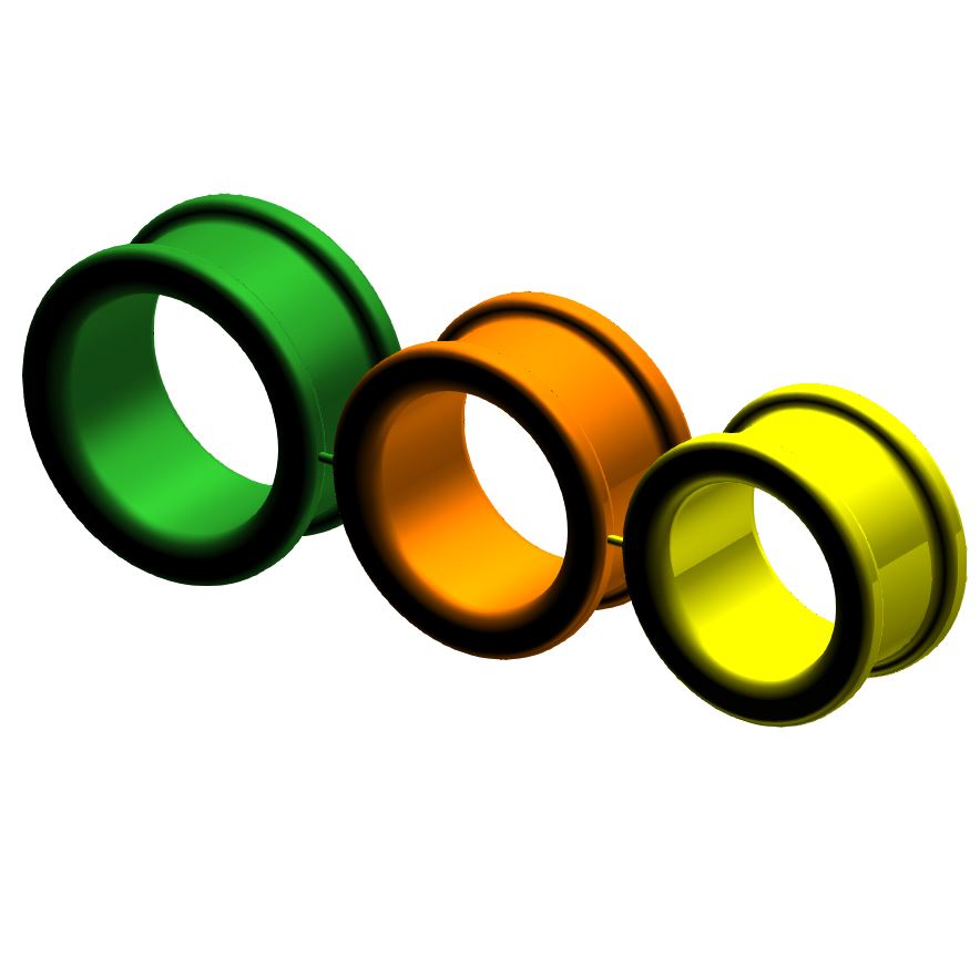 Die Ringe sind autoklavierbar, grau und je drei in den Größen small, medium, lage oder als Set von je einem Ring mit den Innendurchmesern 20,0 mm, 22,5 mm und 25,,0 mm erhältlich.