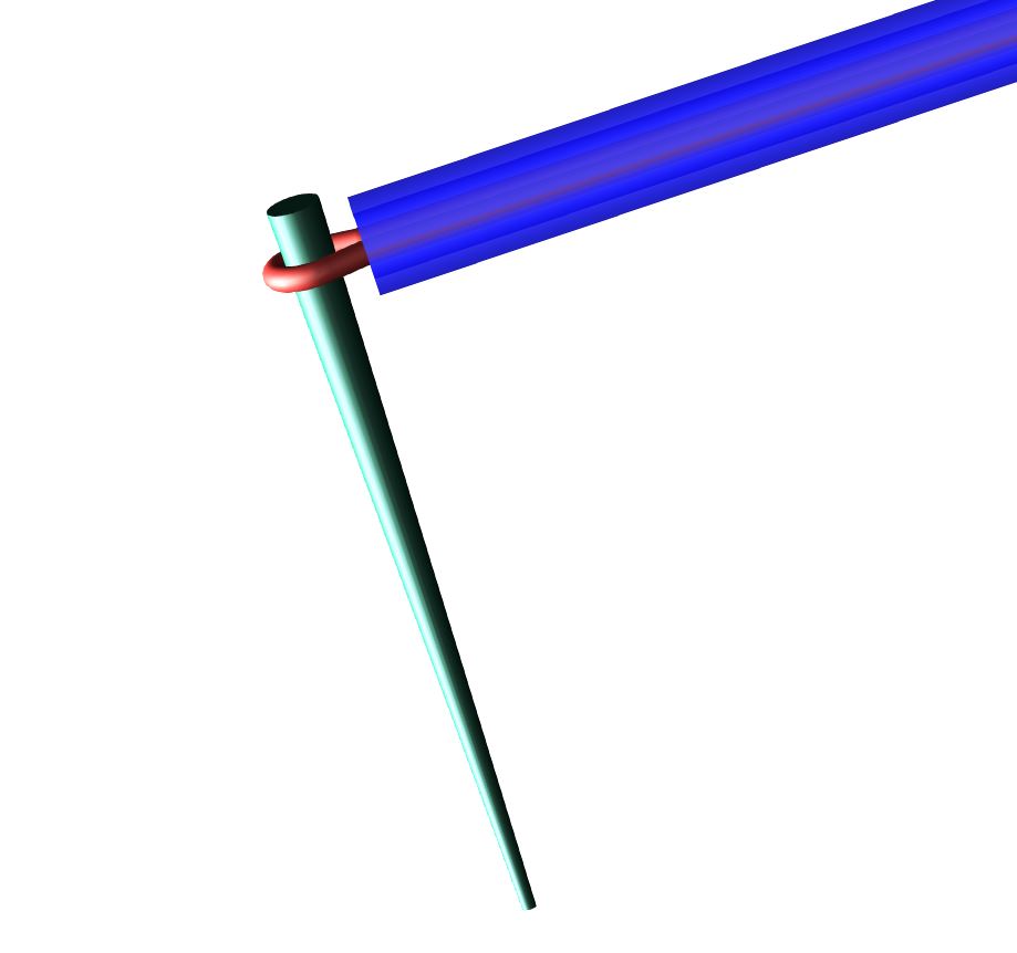 – Zur Montage die Kanülen-Draht-Kombination vorne am Griff aufstecken ohne den Draht einzuklemmen, der somit locker in der Längsrille liegen sollte.
